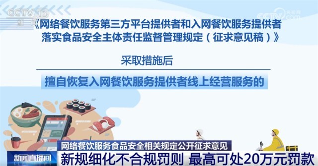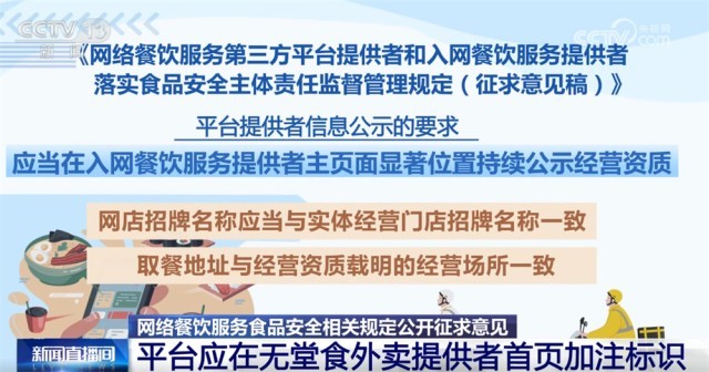 收罗看法稿明白平台供给者消息公示的要求,拒不更正的,以及未将入网餐饮办事供给者运营天分取省级市场监视办理部分从体天分消息进行校验比对等行为将面对五万元以上二十万元以下罚款。